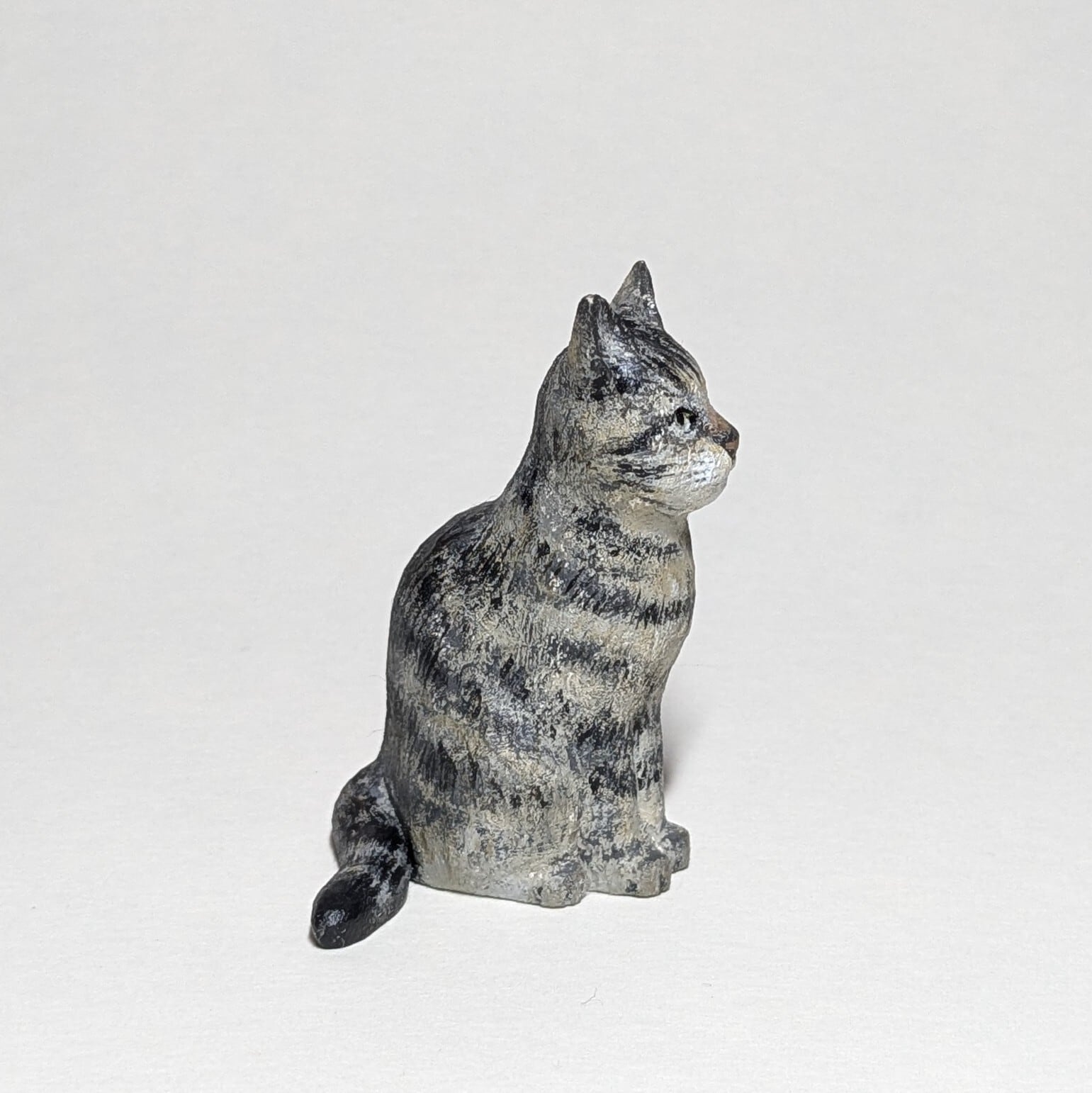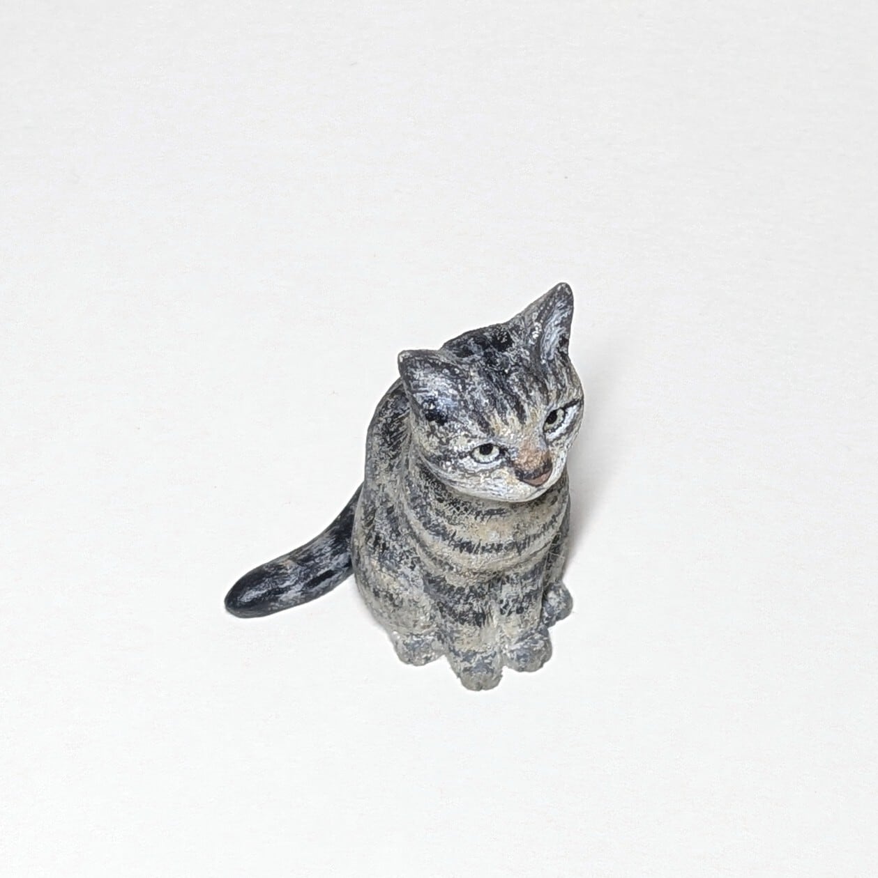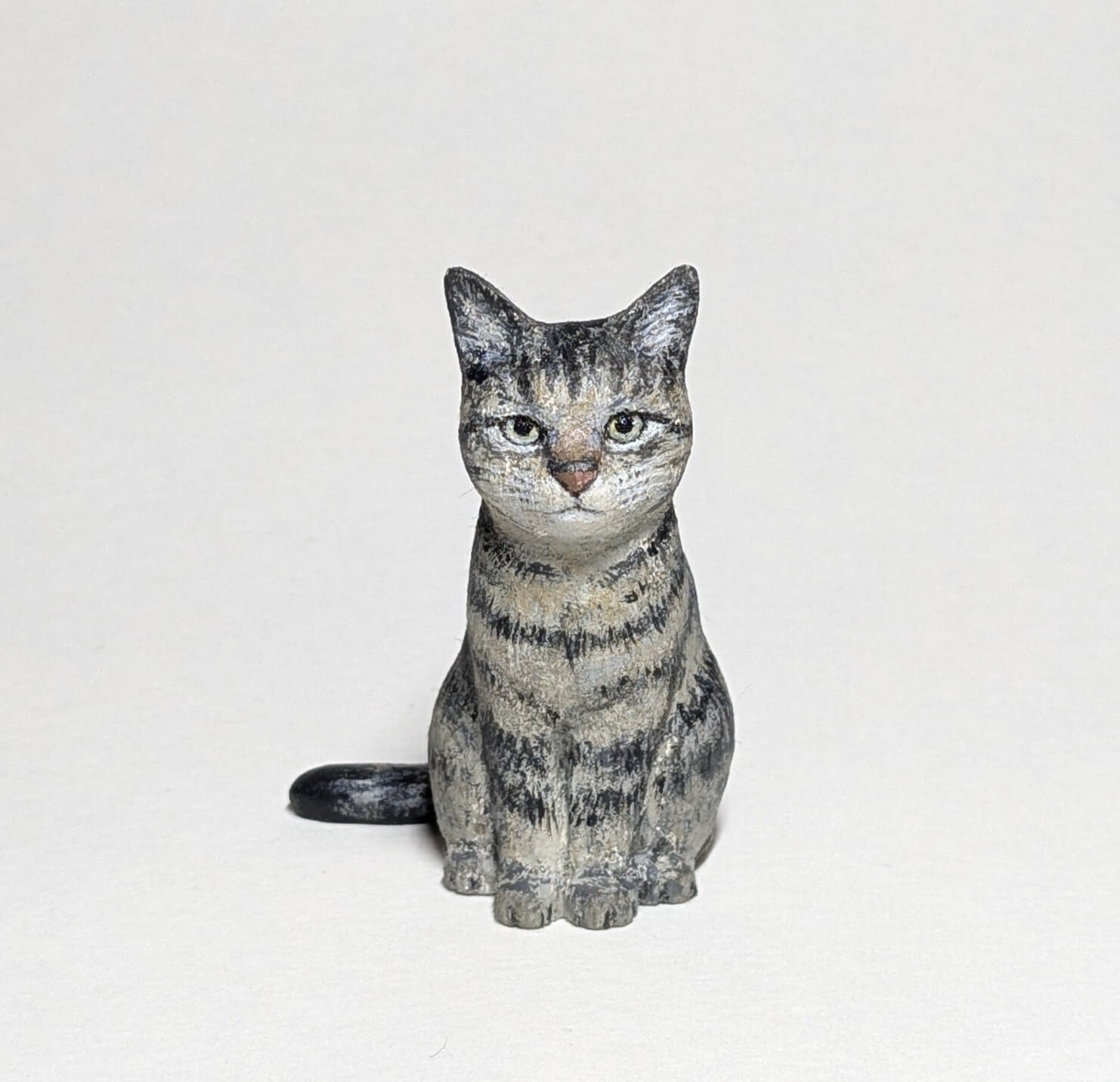 ✽〈小さな木彫り猫〉と〈木彫り猫〉の身長差は2センチ程度ですが、全身の体格には2倍以上の差がございます。作品サイズをご確認ください。