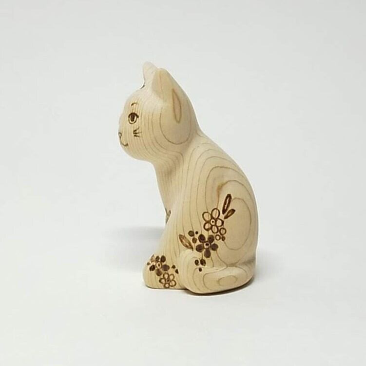 ちいさな招き猫は、1匹1匹手で彫り、顔や模様はウッドバーニングで手描きしています。同じ顔、同じ模様、同じ体つきの猫はどこにもいない、ただ1匹だけの猫です。